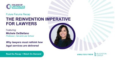 The College of Law Practice Management, in partnership with Blickstein Group, is introducing written recaps of its Futures Forum meetings. These summaries highlight the key ideas, emerging trends, and practical insights from each session—allowing you to revisit the discussion or catch up if you couldn’t attend live. Together with our video recordings, they make it easier to stay connected to the conversations shaping the future of the legal profession.